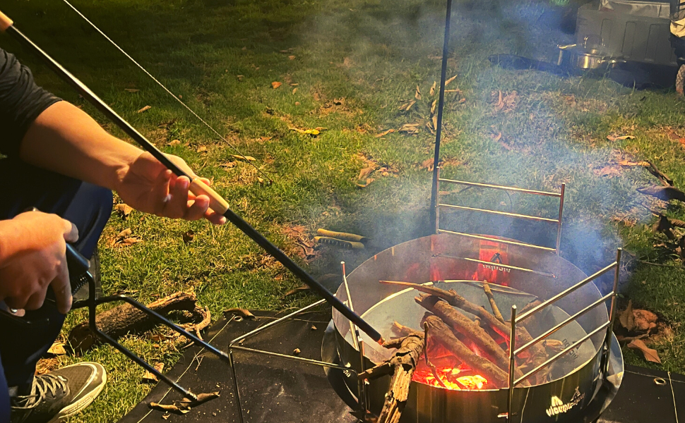 - 組み立て時サイズは66cmあるので、火元から離れた場所で使用することができ、火の粉や灰が飛んでくる心配も少ないです。