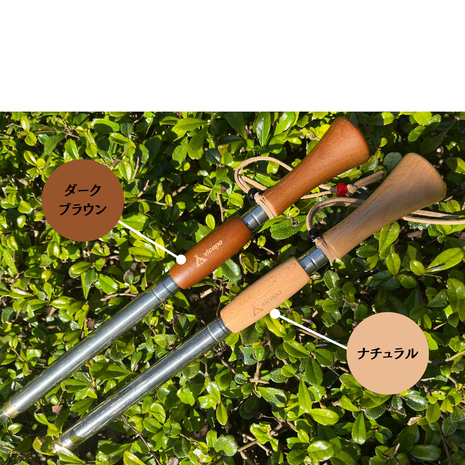ハンドルの色が自然の中に溶け込みやすい木目調です!自然の中に馴染み、焚き火をもっと楽しめてください!